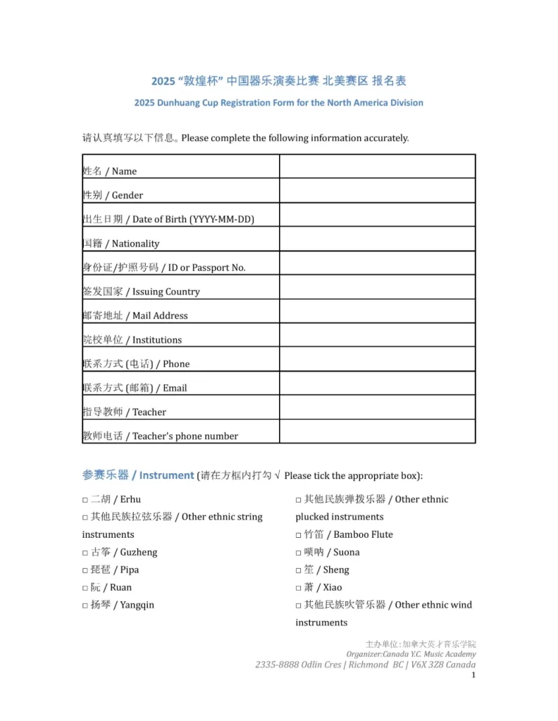 2025 “Dunhuang Cup” Chinese Instrumental Music Performance Competition Regulations for the North America Division